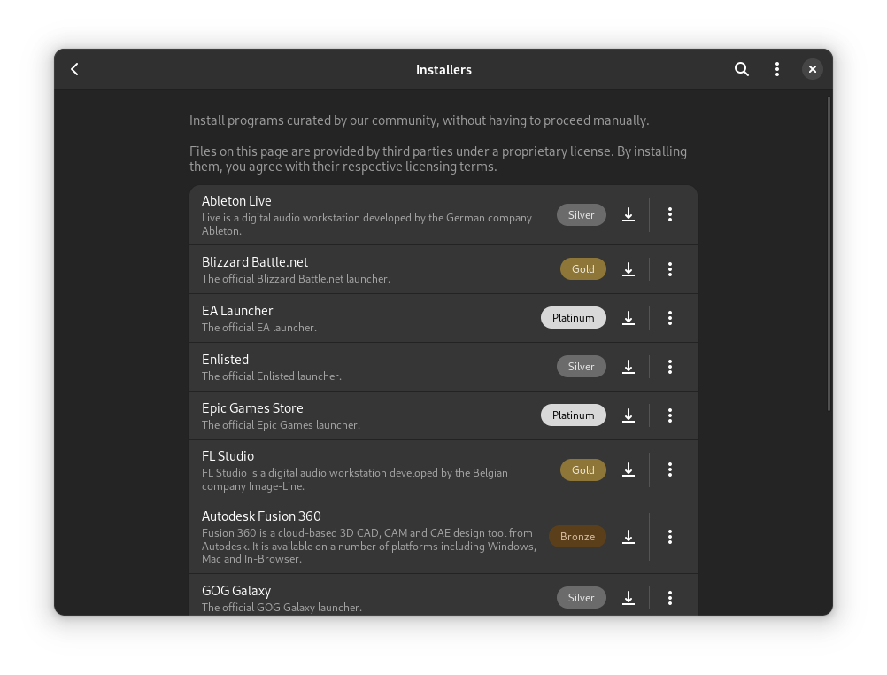 Installers (introduced in Gnoppix 23 PRO) it is an easy way to install games and applications into your Desktop with a few clicks